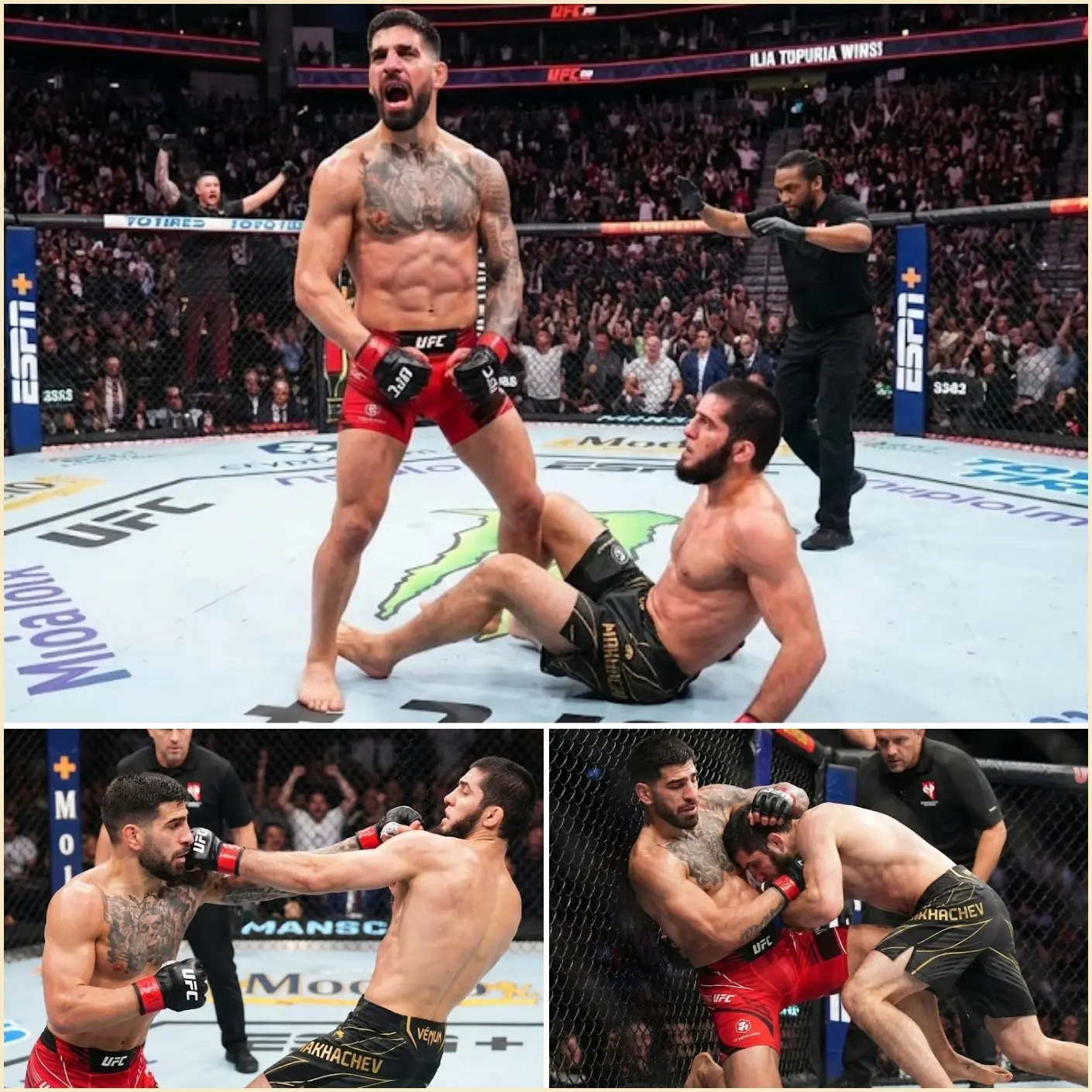 Before the cage door closed, analysts framed the matchup as a fascinating contrast of skill sets. Ilia Topuria brought crisp boxing, relentless pressure, and confidence forged through highlight-reel finishes. Islam Makhachev, meanwhile, was widely respected for suffocating control, composure, and the ability to dictate where fights unfold.