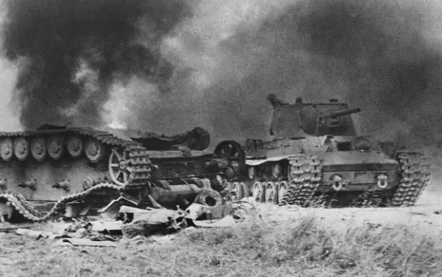 1200 Schuss pro Minute. Die sowjetische Infanterie ohne Deckung, ohne ihre Panzer wurde niedergemäht. Die übrigen 35 Panzer, die noch außerhalb der Halle warteten, versuchten zu reagieren, aber sie wussten nicht, wohin sie schießen sollten. Der Staub war zu dicht, die deutschen Stellungen waren unsichtbar. Deutsche Panzerjäger, ausgerüstet mit 7,5 cm Pak 40 Kanonen, hatten perfekte Schussfelder.
